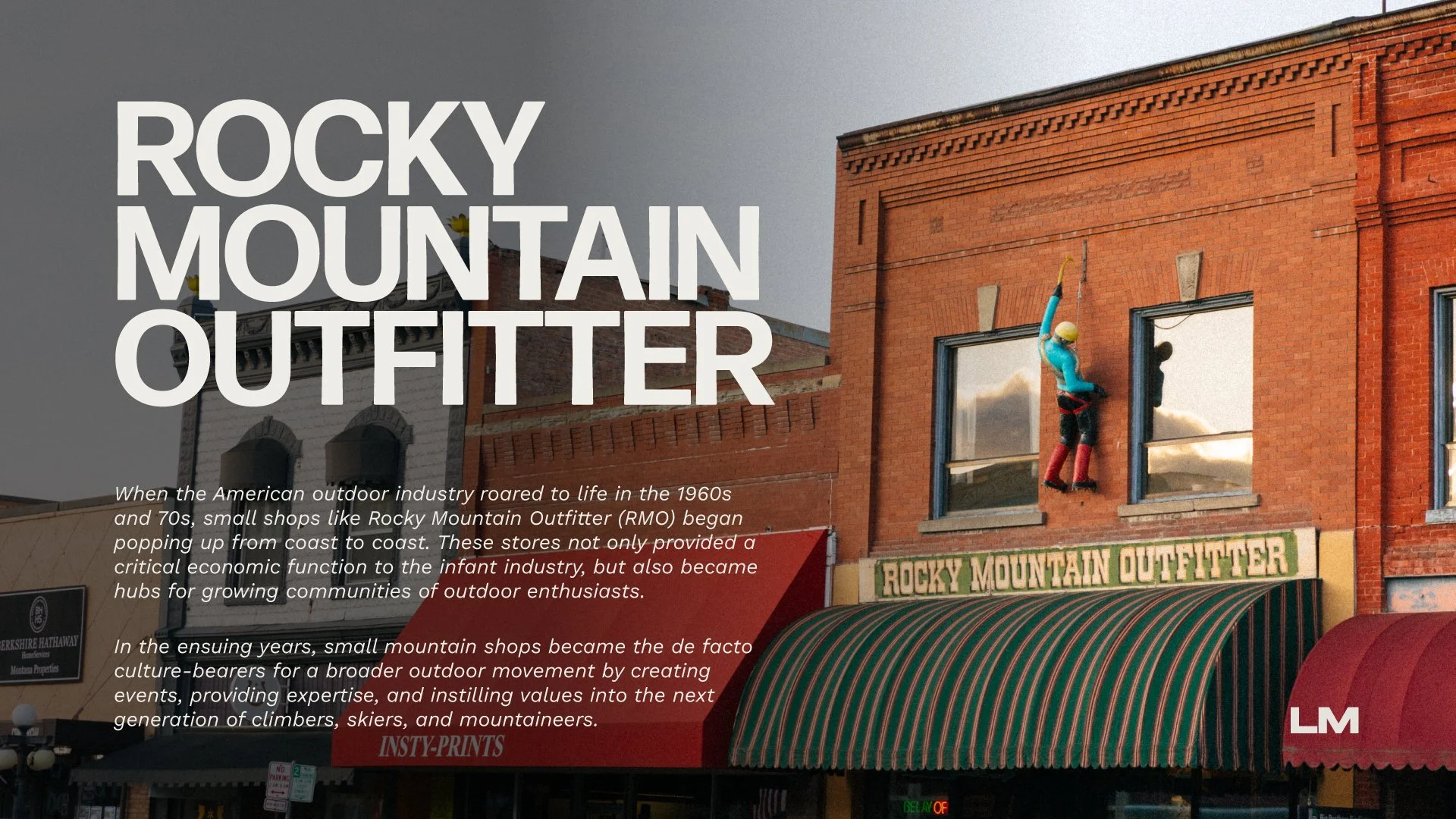When the American outdoor industry roared to life in the 1960s and 70s, small shops like Rocky Mountain Outfitter (RMO) began popping up from coast to coast. These stores not only provided a critical economic function to the infant industry, but also became hubs for growing communities of outdoor enthusiasts. In the ensuing years, small mountain shops became the de facto culture-bearers for a broader outdoor movement by creating events, providing expertise, and instilling values into the next generation of climbers, skiers, and mountaineers.